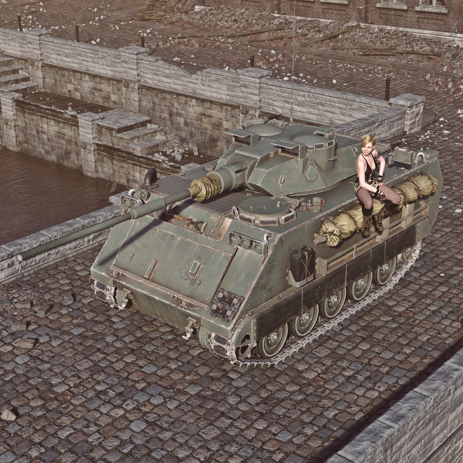 A cool variant of the classic M113 Armored Personnel Carrier. Equipped with a turret and high caliber gun. Also has 2 rigged and movable MAG machine guns (M240) for fire support and some space for troops. Turret and hatches are rigged for more realistic pics. Driver hatch and engine hatch are also rigged. Rear main hatch is rigged for realistic dismount pics. So is the door in the rear hatch. Also has hatches on the top rear part for machinegun access and firing control. Turret and gun also movable, so are the MAG guns.