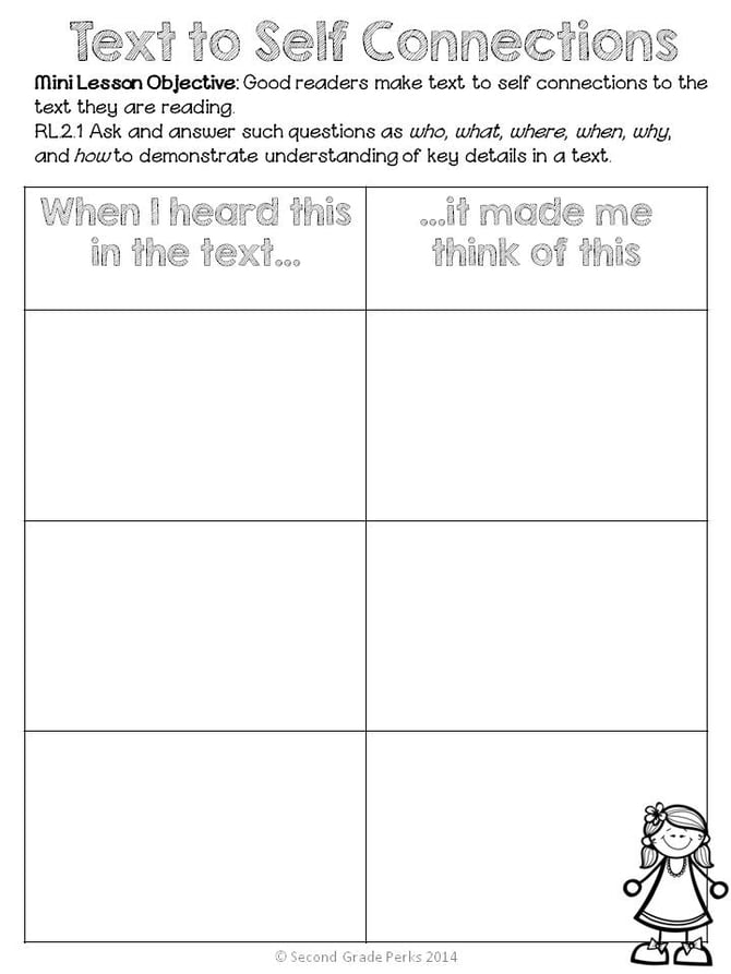 The mini lessons included in this packet are:text to self connection {RL.2.1}