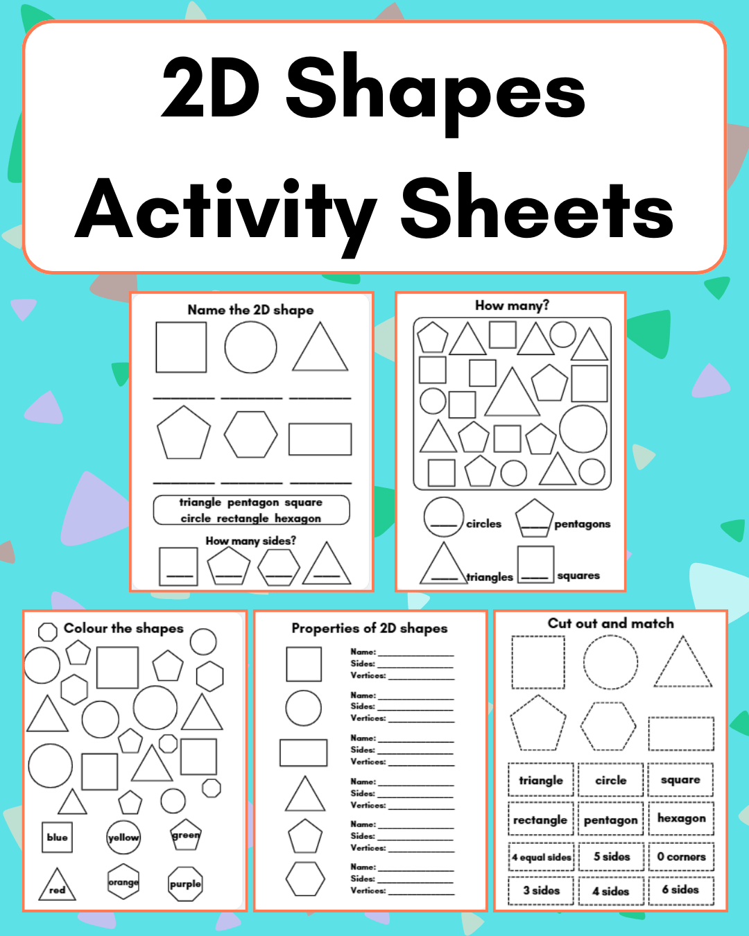 This set of five 2D shape worksheets includes: