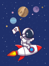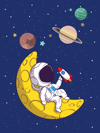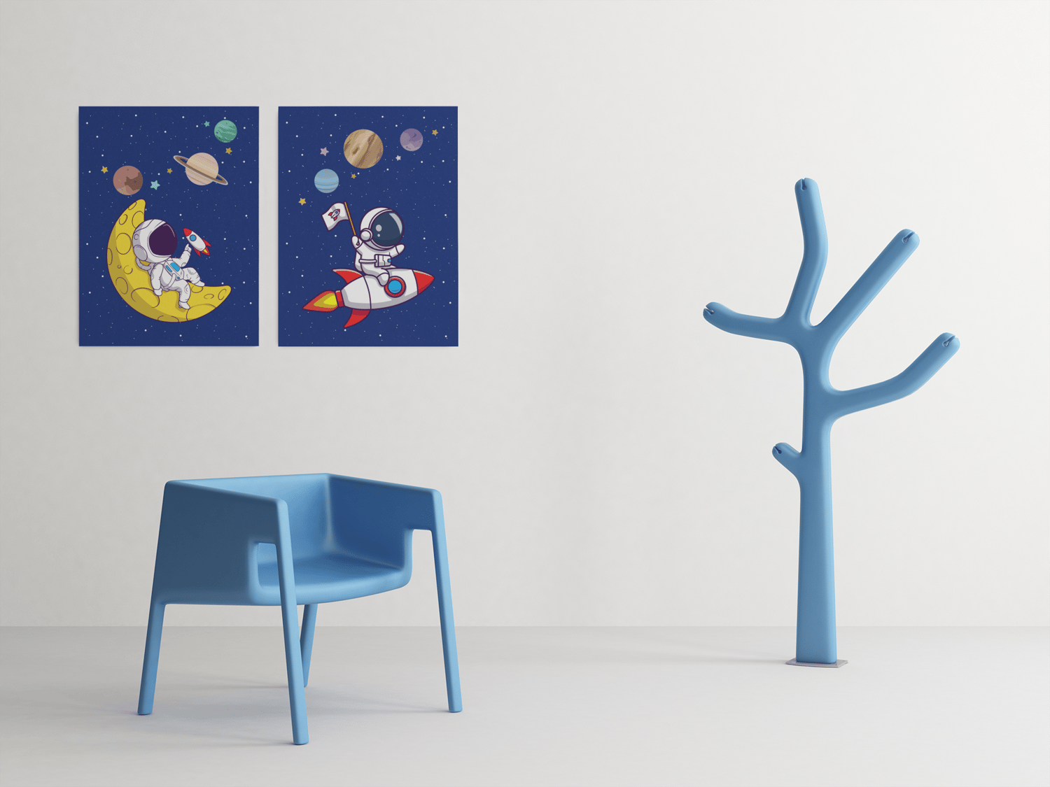 An astronaut riding a rocket and another on the moon — this matching set adds excitement to space-themed rooms..