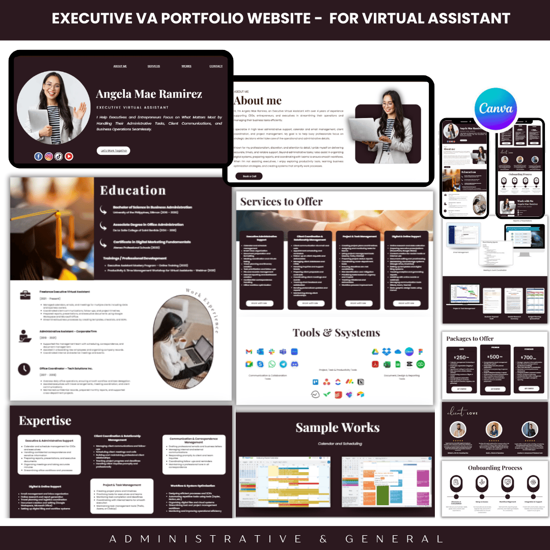 EXECUTIVE VA IDEAL FRAME PORTFOLIO WEBSITE FOR VIRTUAL ASSISTANT/FREELANCERS TEMP 01