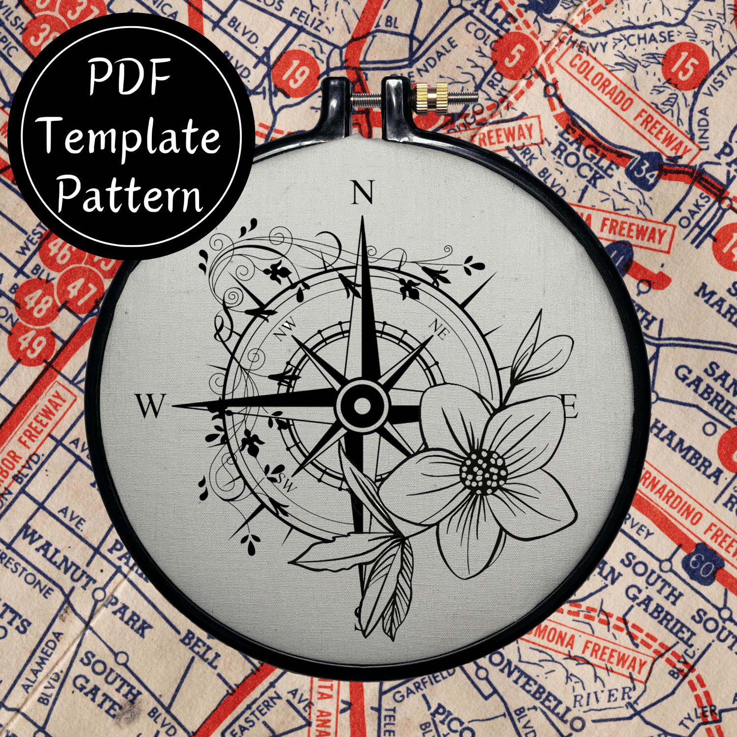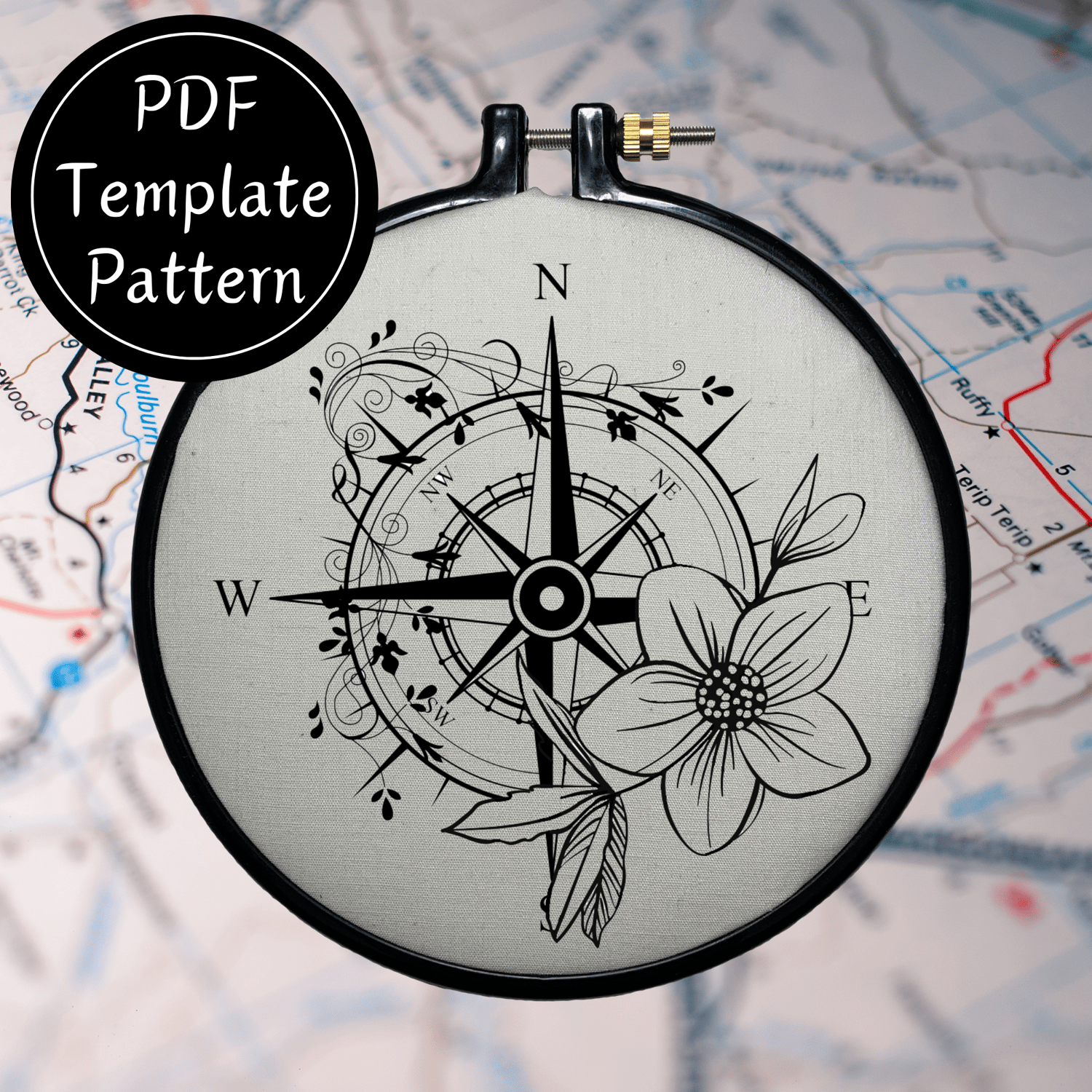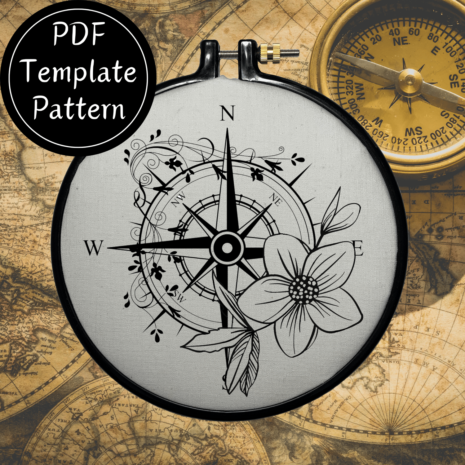 Compass Flower Hand Embroidery Pattern DIY Embroidery