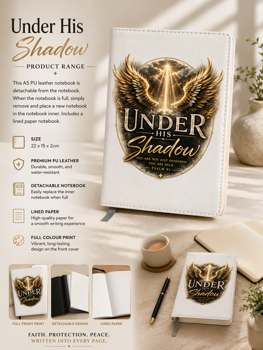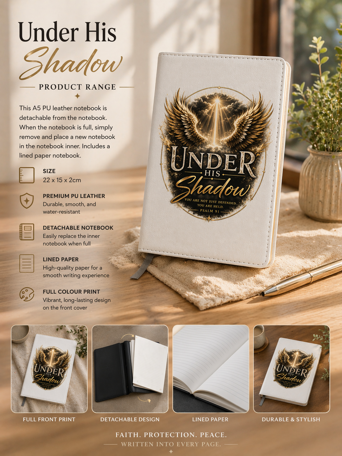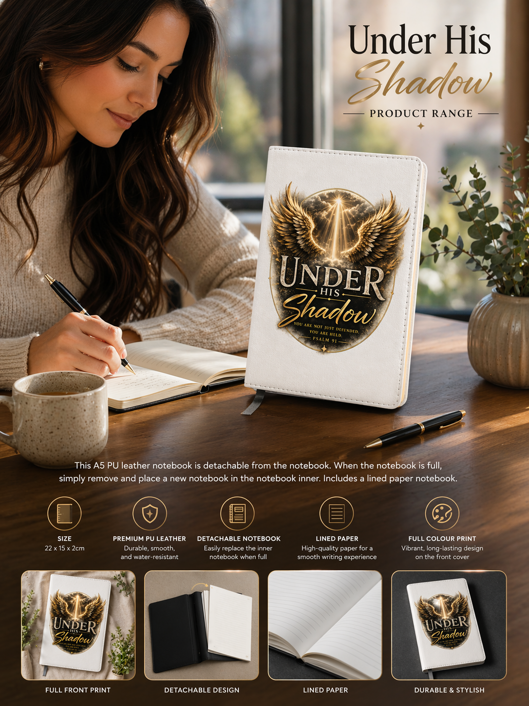 This A5 PU Leather notebook is detachable from the notebook. When the notebook is full, simply remove and place a new notebook in the notebook inner. Includes a lined paper notebook.