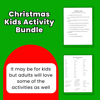 Your customers will be looking for activities to keep the kids occupied this Christmas Holiday season. With everything busy parents and grandparents have to do for the celebration you can make their job of entertaining a little easier. This activity bundle will give you ideas of activities you can sell to them.