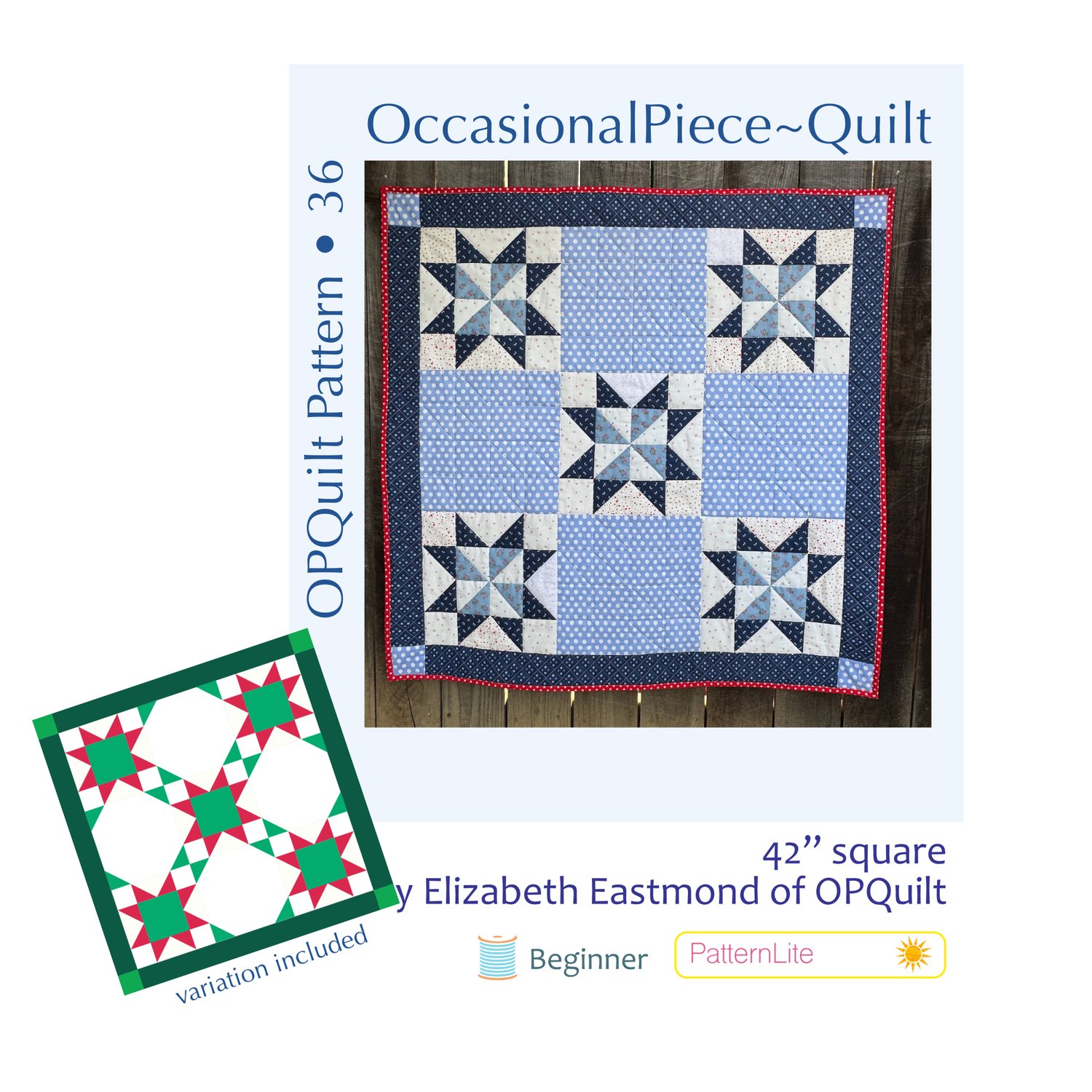 Another in a series of patterns for PatternLite, the Stars for Baby / Beginner Quilt pattern has full-sized templates, multiple color illustrations, ideas for completion and tips and tricks for sewing. While this pattern is geared for a skill level for beginner as it has a lot of basic directions, more advanced quilters can use it as a springboard for other ideas.