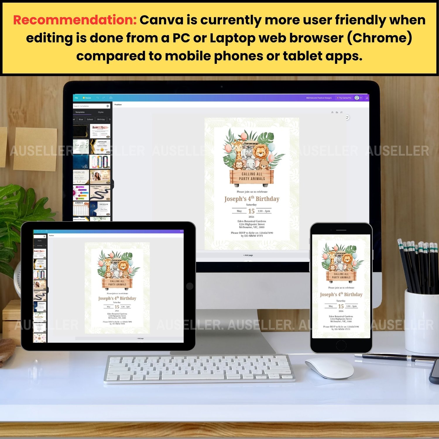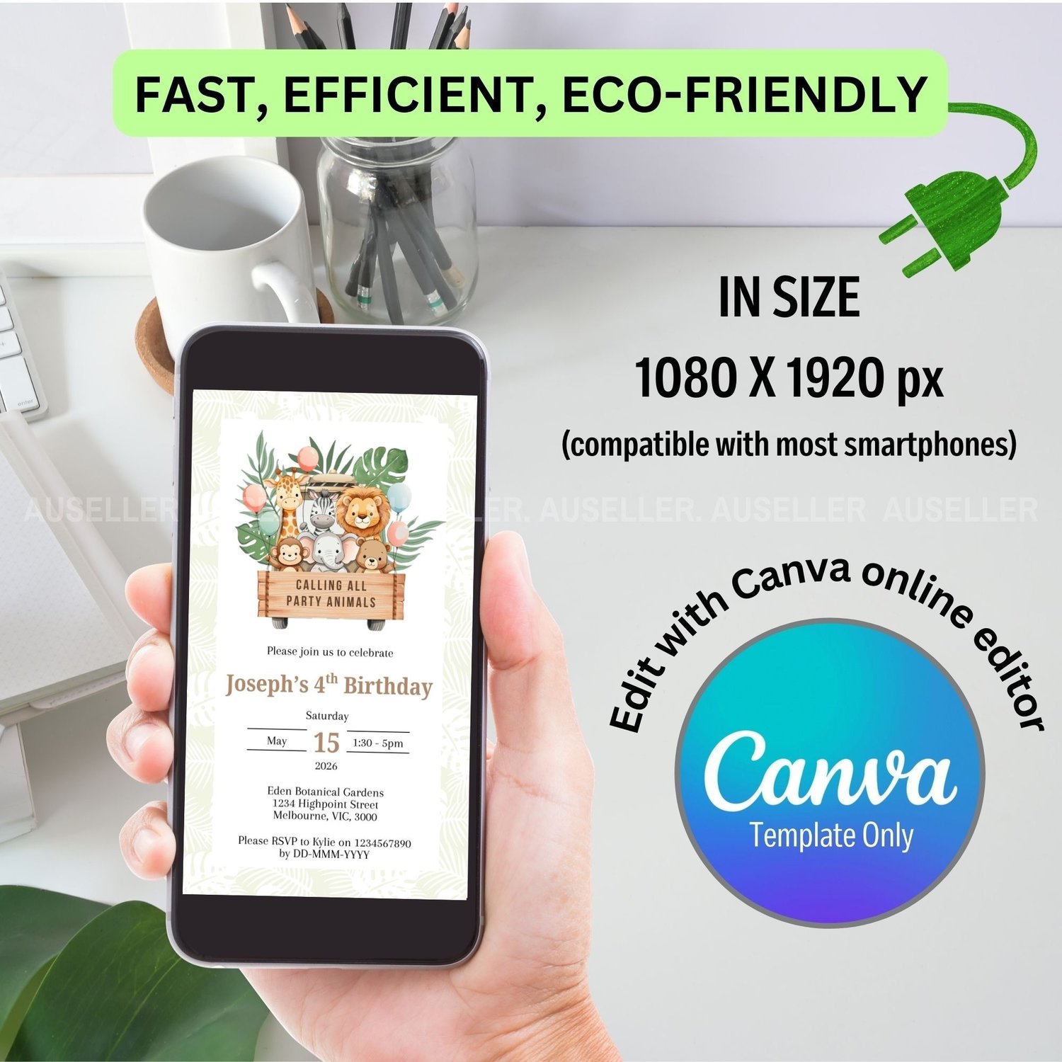 Designed to delight both kids and parents, this invitation is self-editable so that you can personalise all your party details. Simply add your child’s name, age, party location, time, and RSVP information. It's that easy.