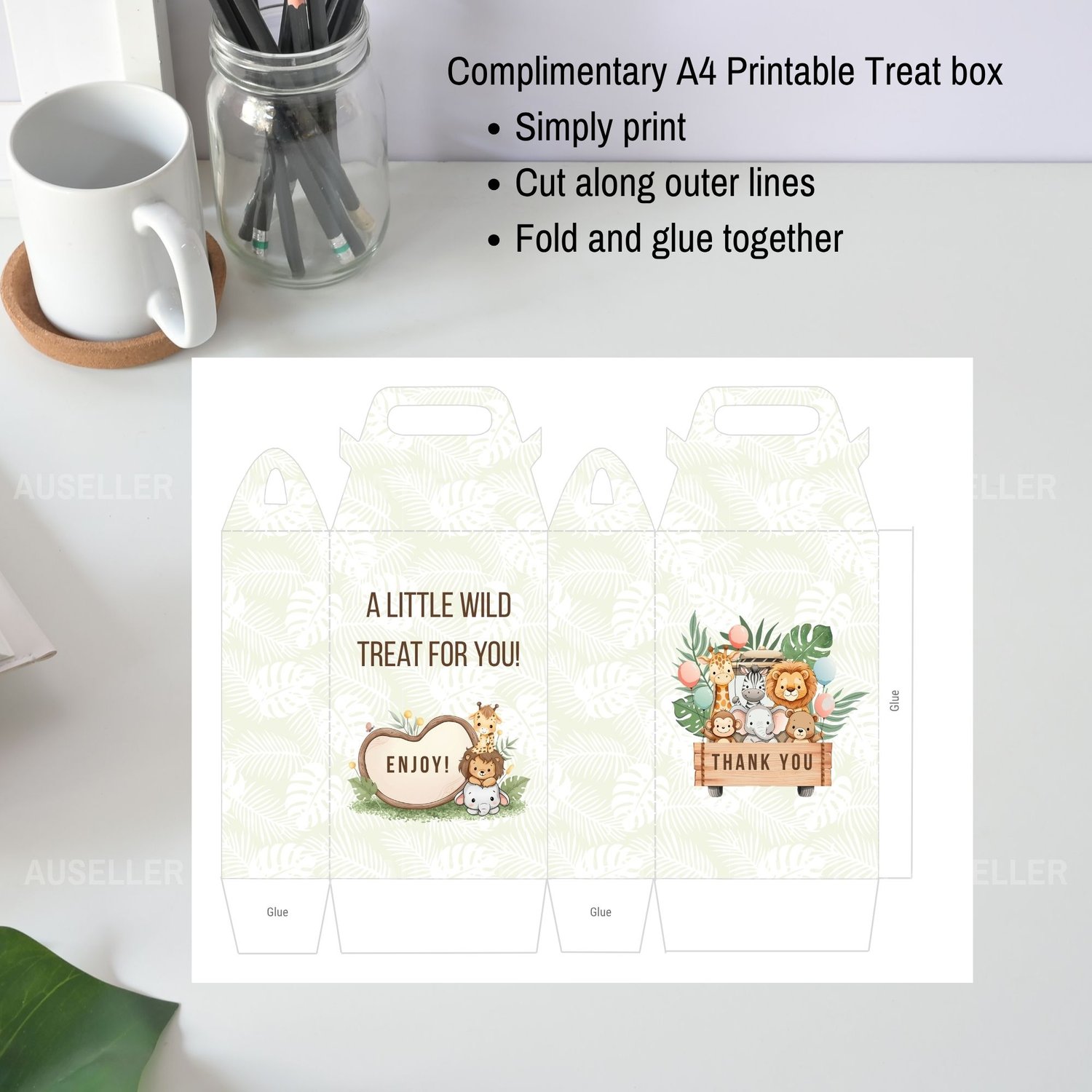 - 1 x Printable PDF containing a DIY treat box and envelope