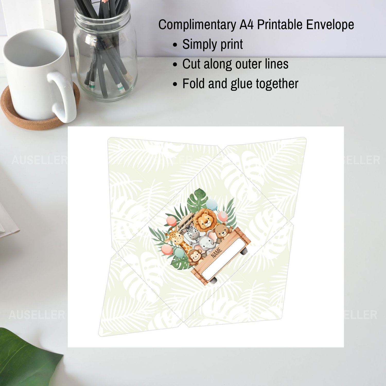 Safari Animals Birthday Invitation and Printable Treat Bag and Envelope