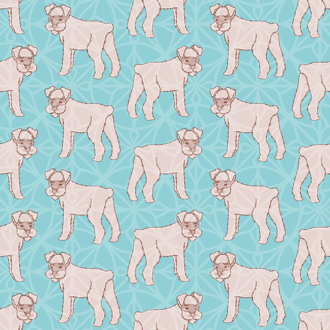 Cute standing Schnauzer pattern illustration. Kawaii dog vector seamless background.