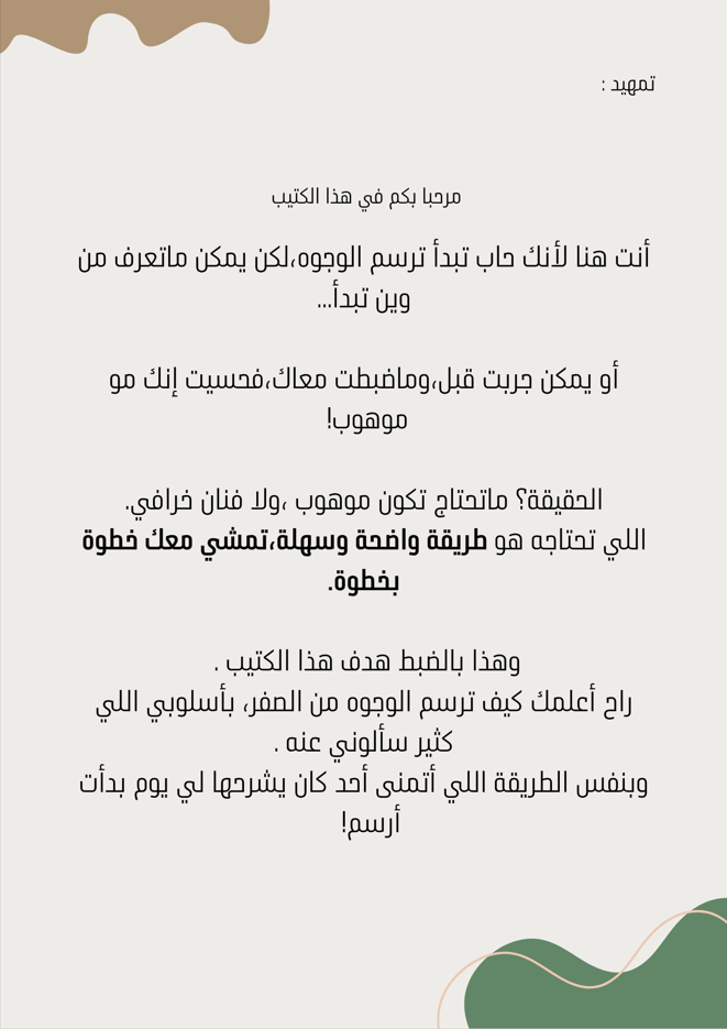 - الكتيب يشرح رسم البورتريه (الوجه) فقط ، وهي الوجهة الافضل للانطلاق بالرسم