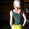 Louise is the understated standout of a refined twin set — equally at home layered under Thelma, the matching cardigan, or worn on its own. With its clean V-neck front, subtly echoed by a gentler V at the back, and a split hem that adds just the right amount of movement, this design plays with line and shape in a quietly striking way.