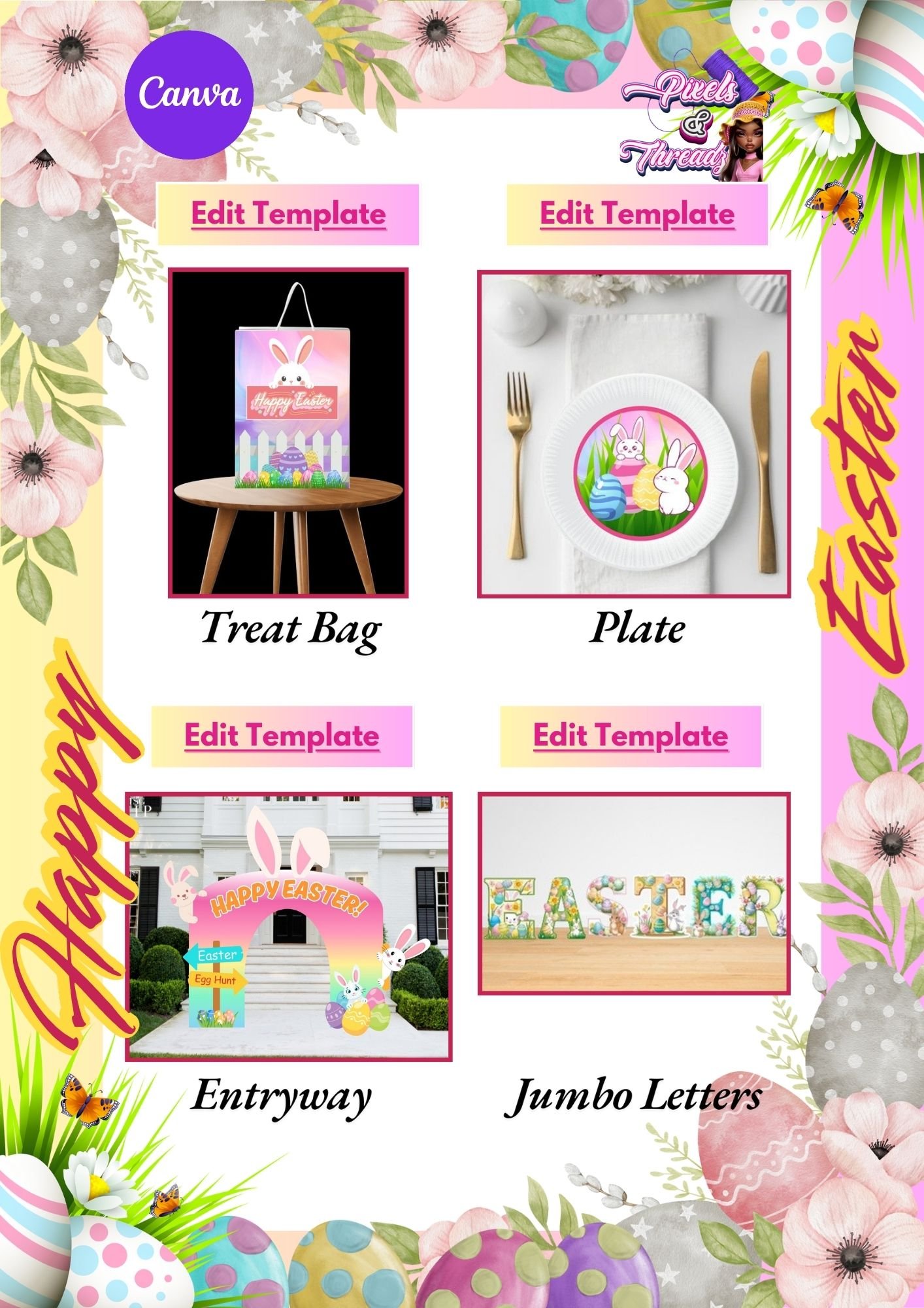 Easter Party Decor Canva Template Bundle – PLR Included