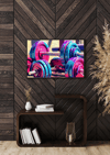 This is a photograph of a gym or fitness facility showing a collection of dumbbells arranged on what appears to be a rack or storage system. The dumbbells feature colorful weight plates in vibrant hues including pink, blue, and other bright colors, which gives the equipment a modern, energetic appearance rather than the traditional black or silver found in many gyms.