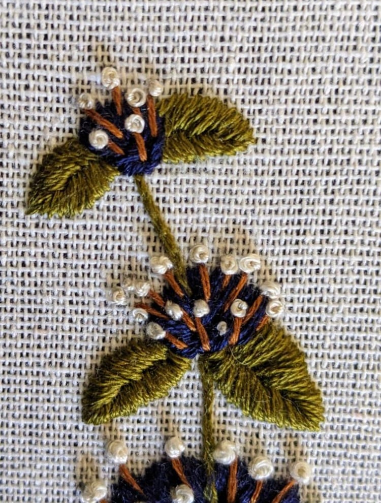 Suggested stitch guides for details like French knots, satin stitch, and split stitches