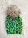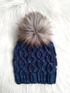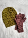 The ssssssnake-like cables climbing up the hat came about from designing the Salazar Hat. These fun staggering cables culminate in an intricate looking crown that fits right into the pattern.