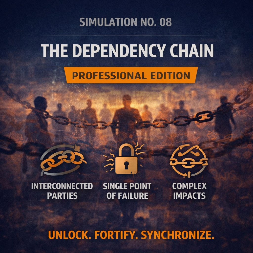 The Dependency Chain (Professional Edition) reveals what systems produce when people act under real constraints. Set in a healthcare continuity environment, this facilitator-led simulation places participants inside a tightly coupled system where delay, dependency, and partial visibility reshape outcomes over time—without being immediately visible.