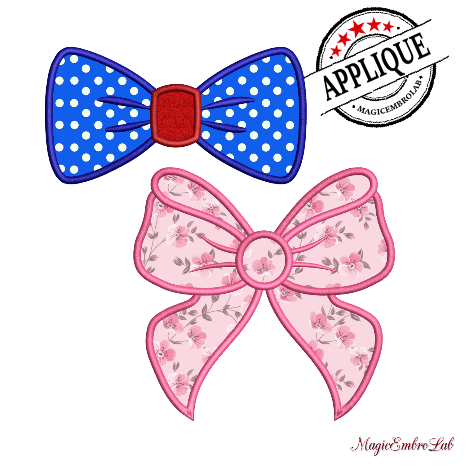 Bow and Bowtie APPLIQUE set, 6 sizes, Instant Download