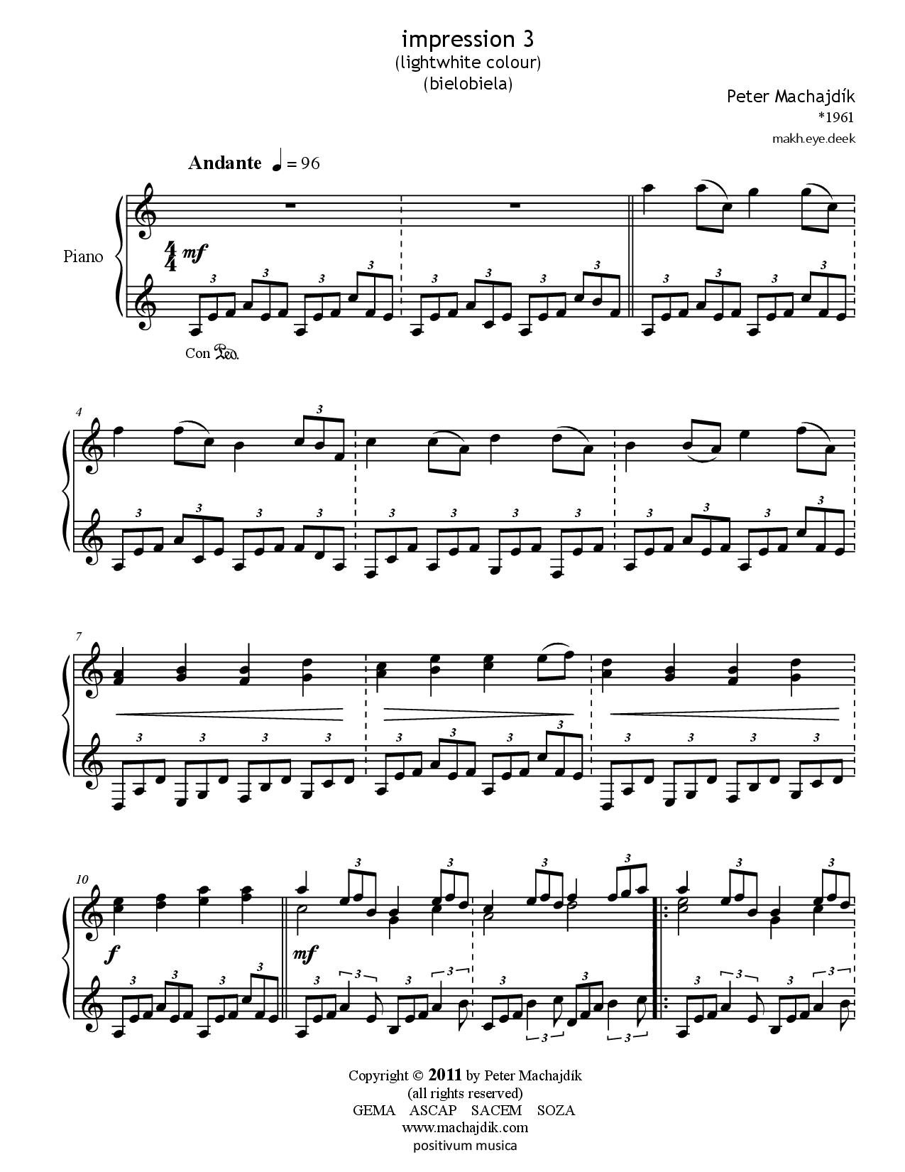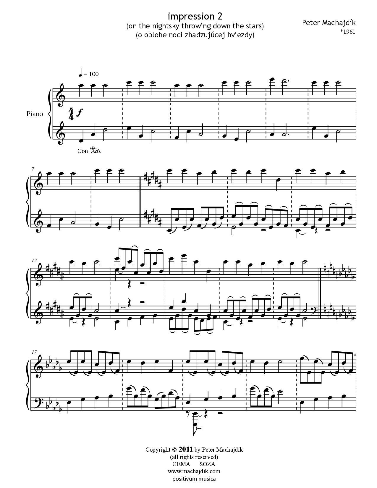 Peter Machajdík: FOUR IMPRESSIONS for piano (Digital Sheet Music)