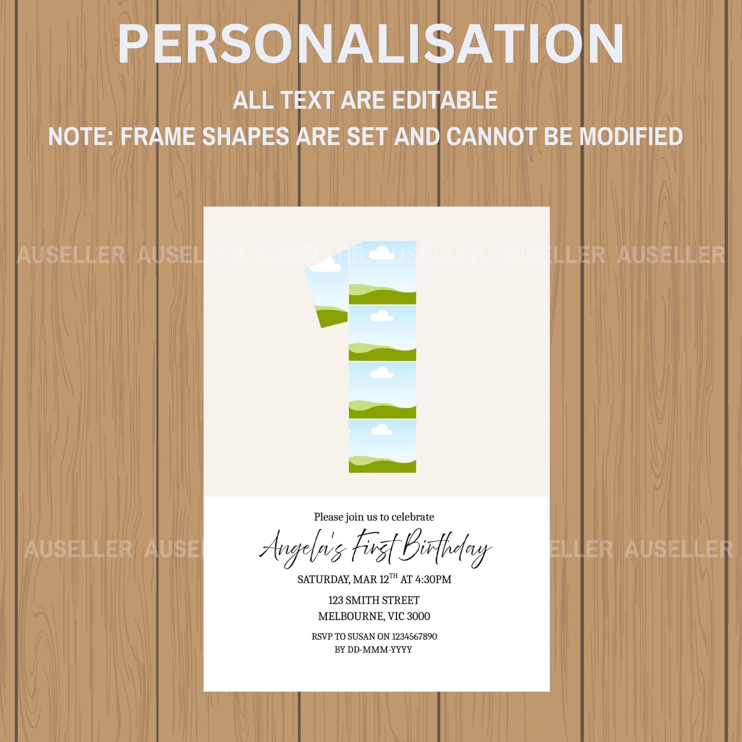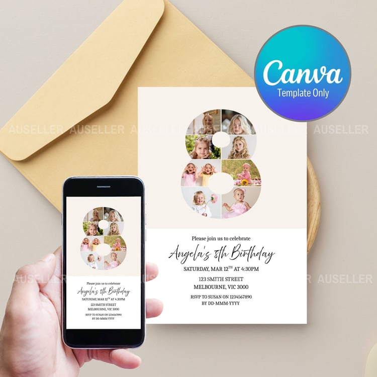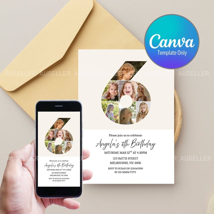 We have a separate listing on our sister website, which allows you to personalise the invitation and place an order to be printed and delivered to you. Check out our kid's birthday numbers minimalist themed invitations here: CLICK HERE!