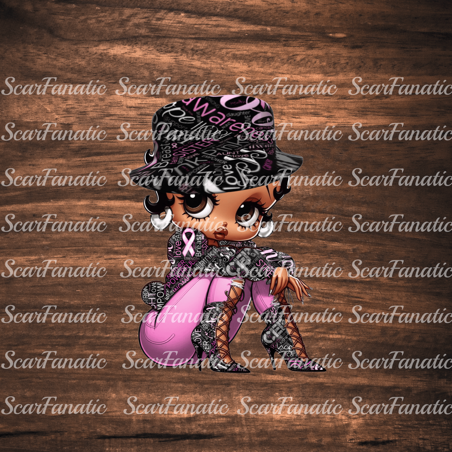 Breast Cancer Awareness Betty Boop in Federa and Heels Pink and Black Design, Sublimation, PNG, DTF, 300DPI, high resolution