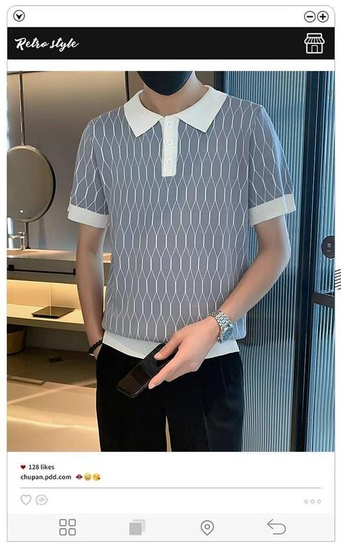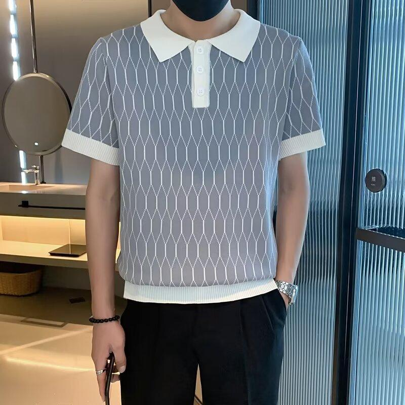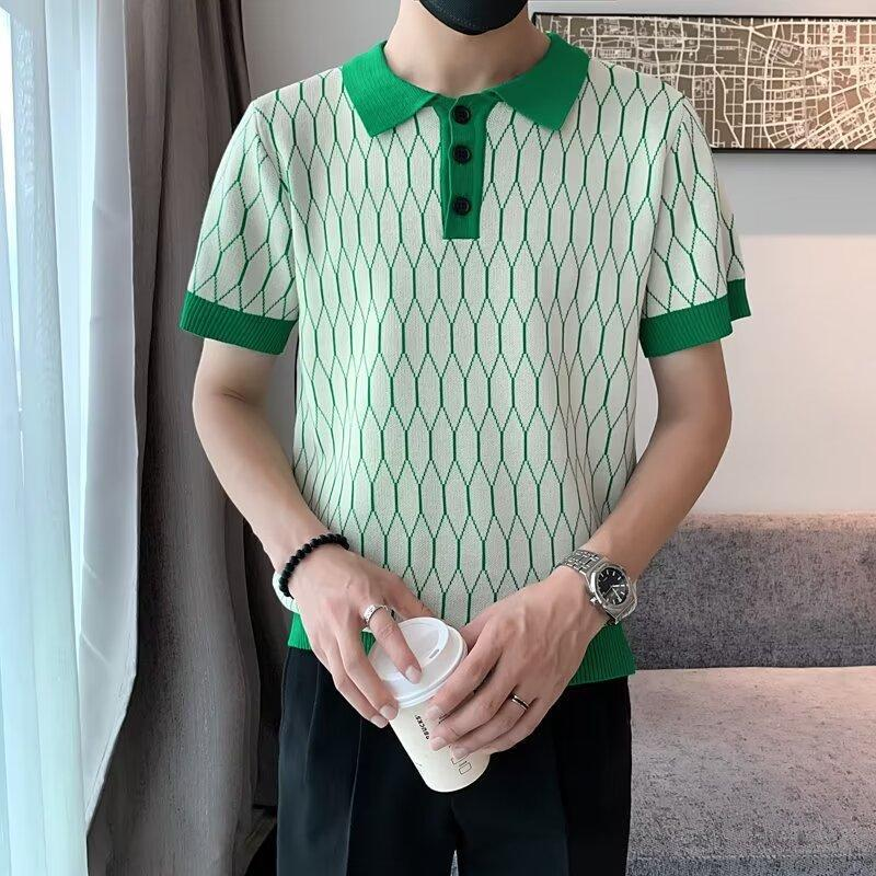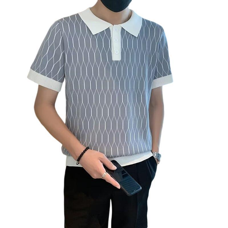 Knitted Silk Polo Shirt for Men, Trendy Brand, Simple Plain Design, Polo Collar, Short Sleeves, Trendy and Easy to Mix and Match, Everyday Clothing