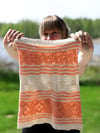 Nurja llinen mix (50 % baby alpaca, 25% linen, 25% silk, 400 m/100 g), or other fingering weight yarn. Shown in yarn kit ‘Kukka’: Cream (C1) and Peach (C2).