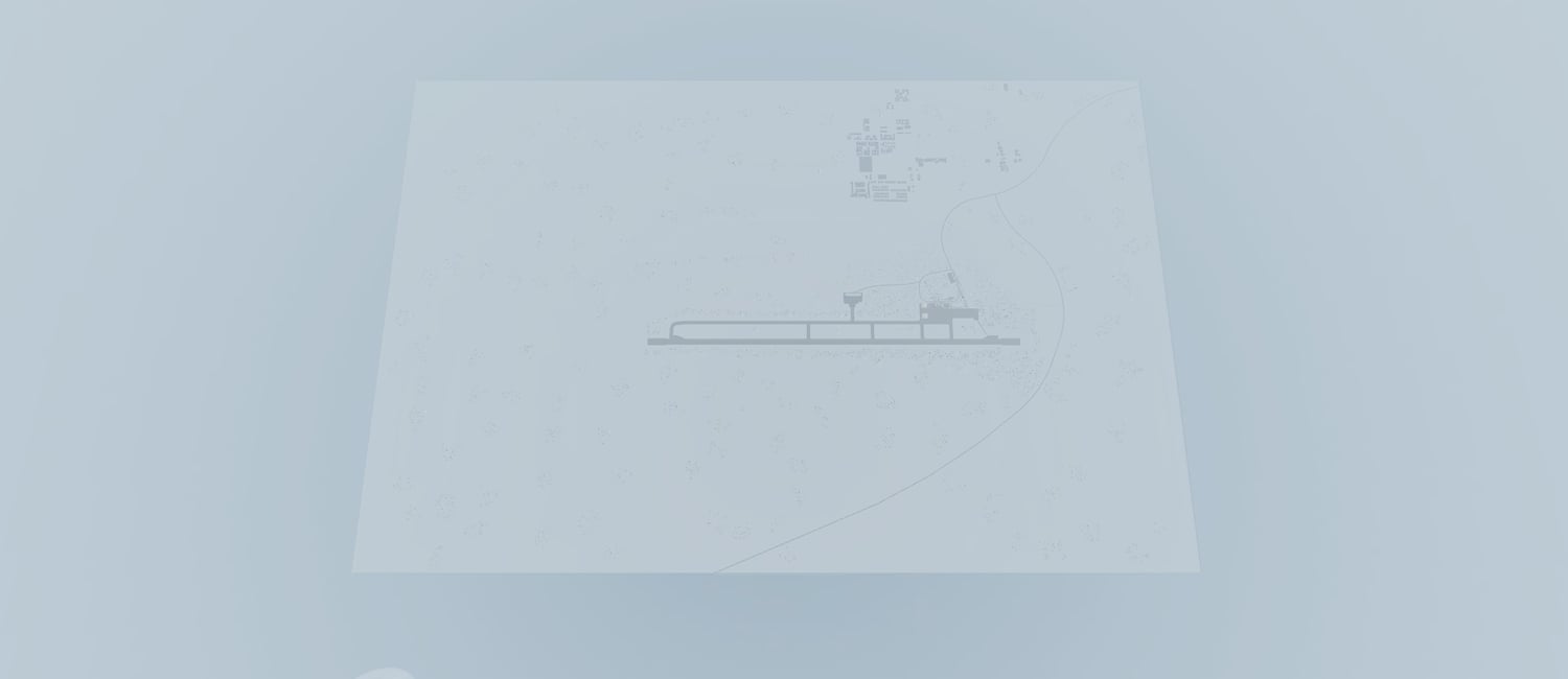 Air Force base in the backdrop of the Alaskan tundra. Features Operations and Barrack filler buildings as well as two large hangars, gate house and central runway