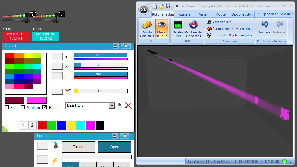 Esta Librería SSL2 está optimizada para trabajar con Magic 3d Easy View. Es decir para ver una representación 3D de las secuencias que estemos realizando con Freestyler, QLC+ o cualquier otro soft que se conecte con Magic 3d.