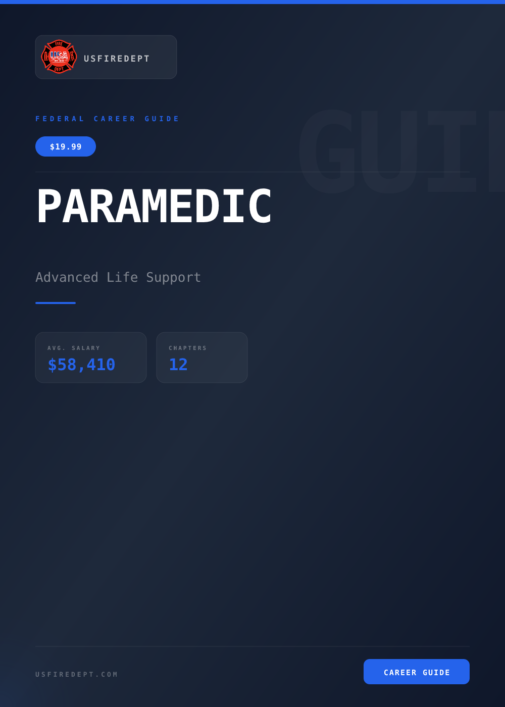 Everything you need for a federal paramedic career. GS-0640 series, NREMT-P certification, clinical scenarios, and 10+ agencies including DoD, VA, NPS, and CBP/BORSTAR.