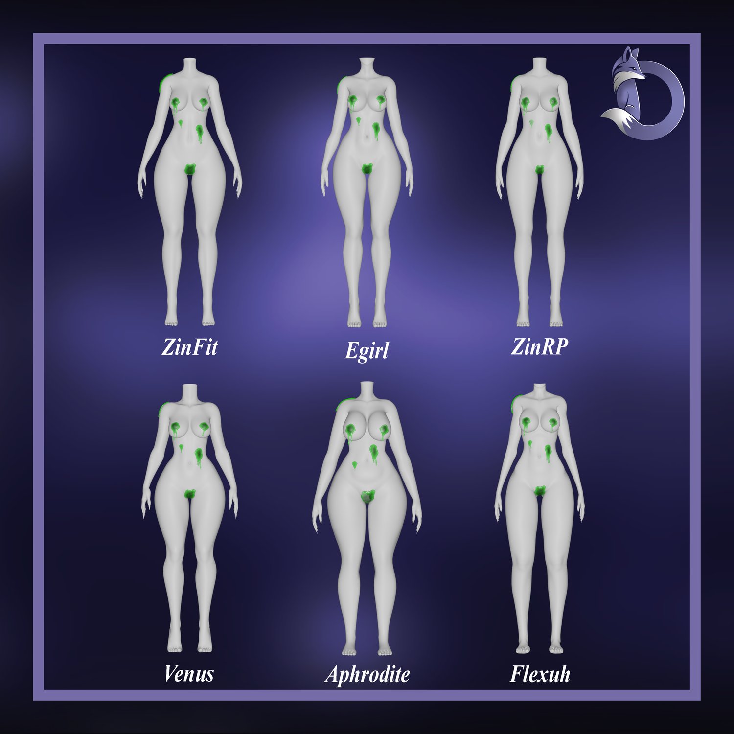 Rigged for Zin Fit Base , Zin RP Base , VRBASE EGIRL , Flexuh base, Aphrodite base and Venus base