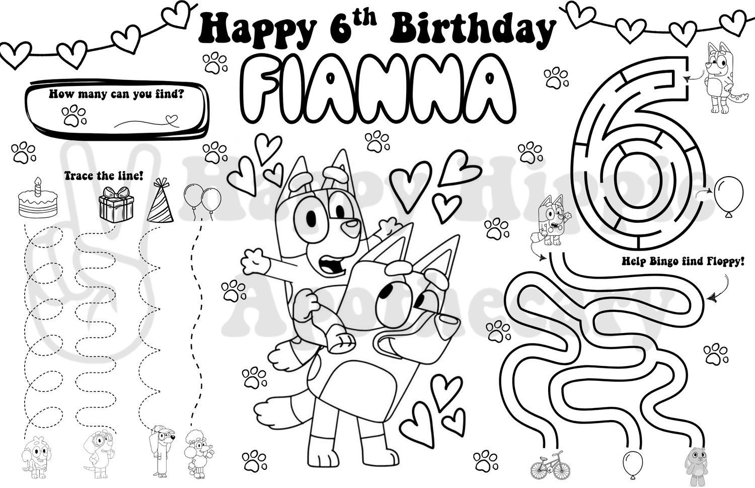 Celebrate your little one’s big day with a paws-itively adorable Bluey-themed personalized coloring mat! 💙🎈 This fun-filled Birthday Activity Page is customized with your child’s name and age, making it a sweet keepsake and an engaging party activity.
