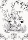 This 33-page coloring book is packed with whimsical homes nestled among toadstools, perched in treetops, or tucked behind garden gates.