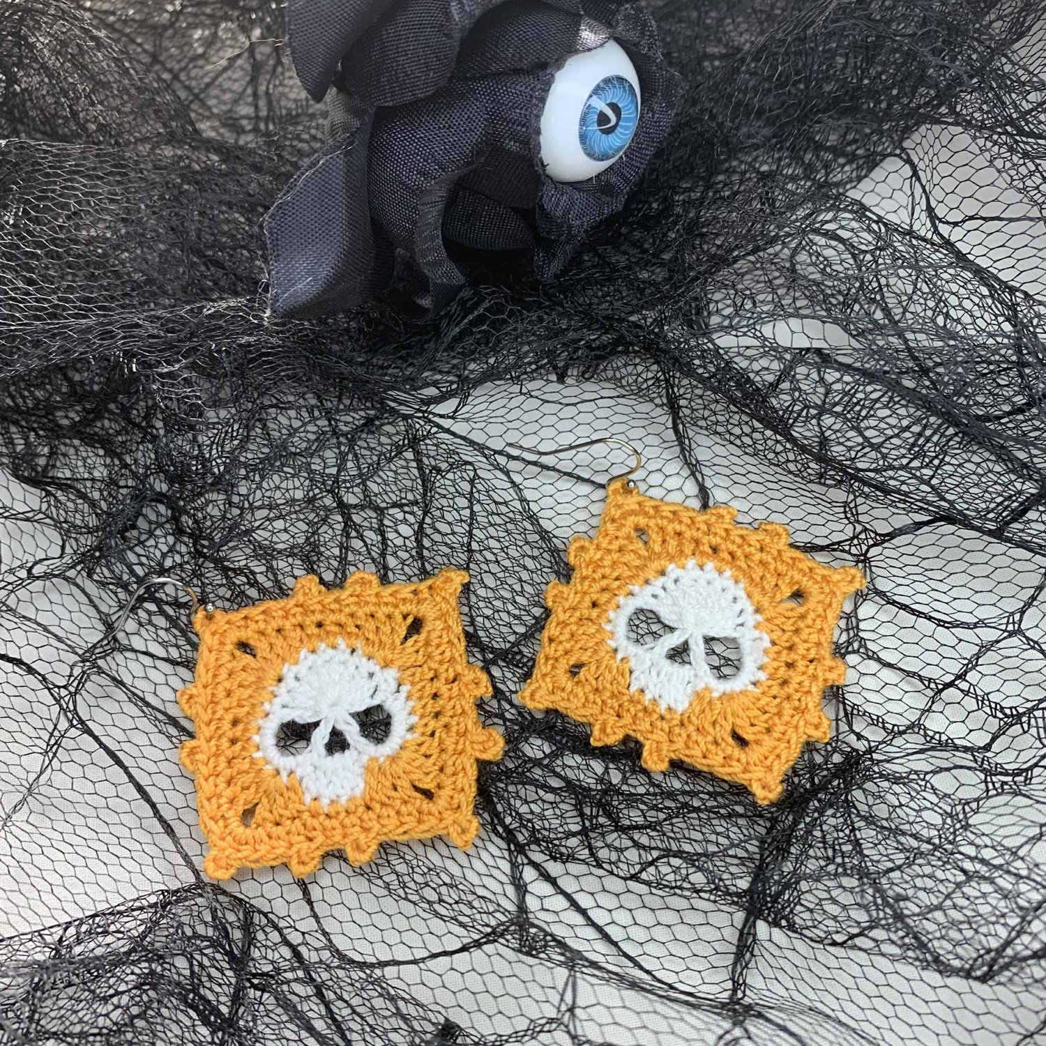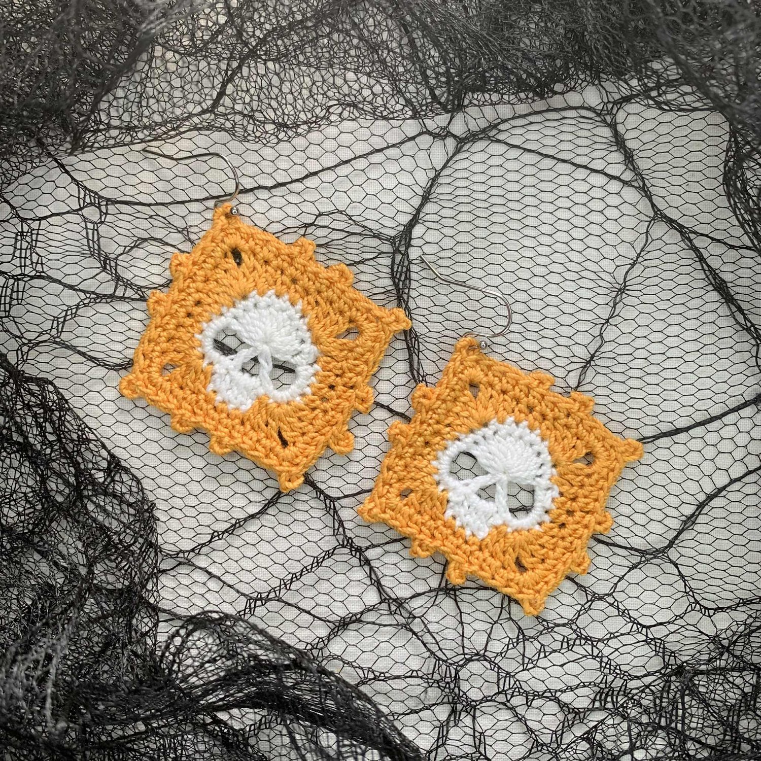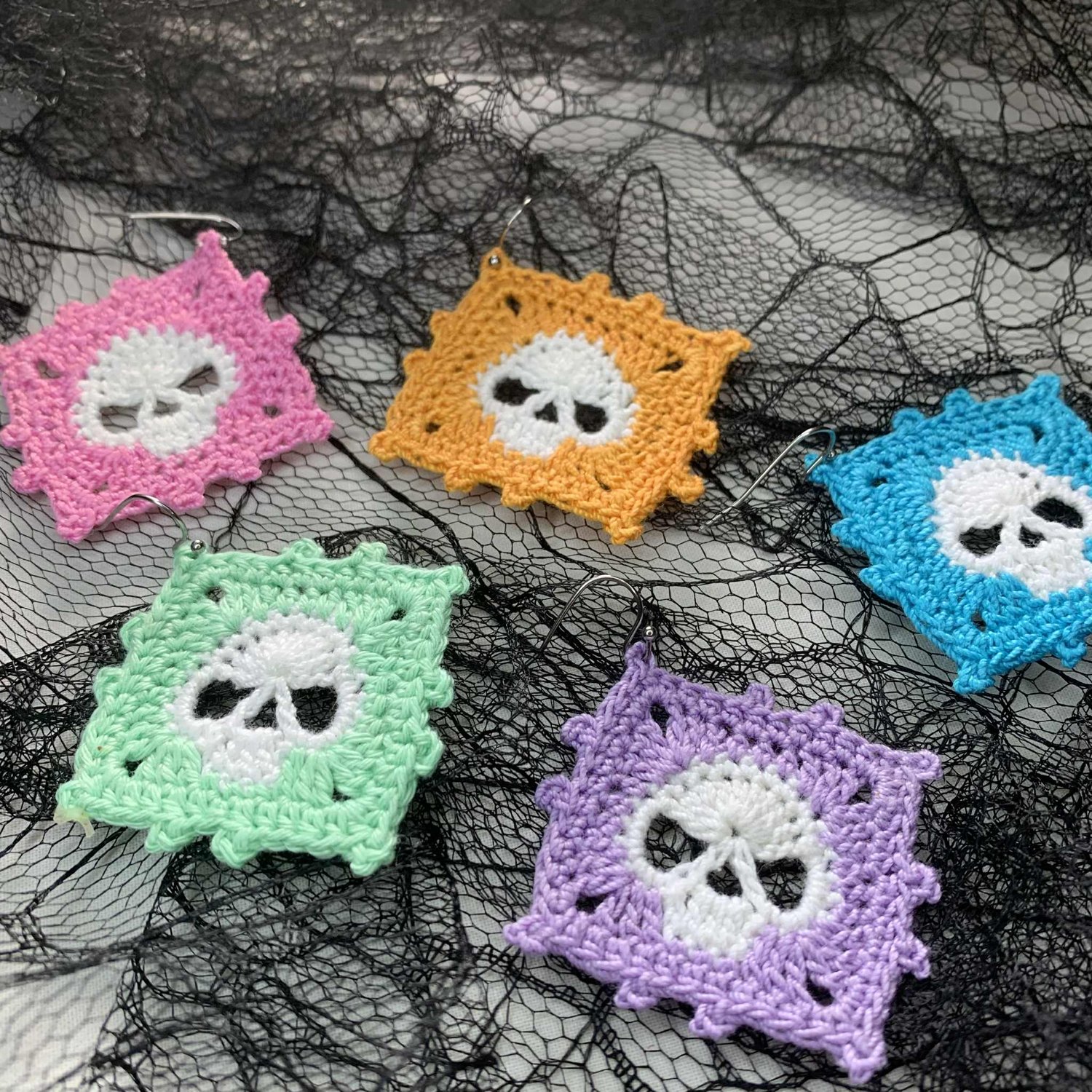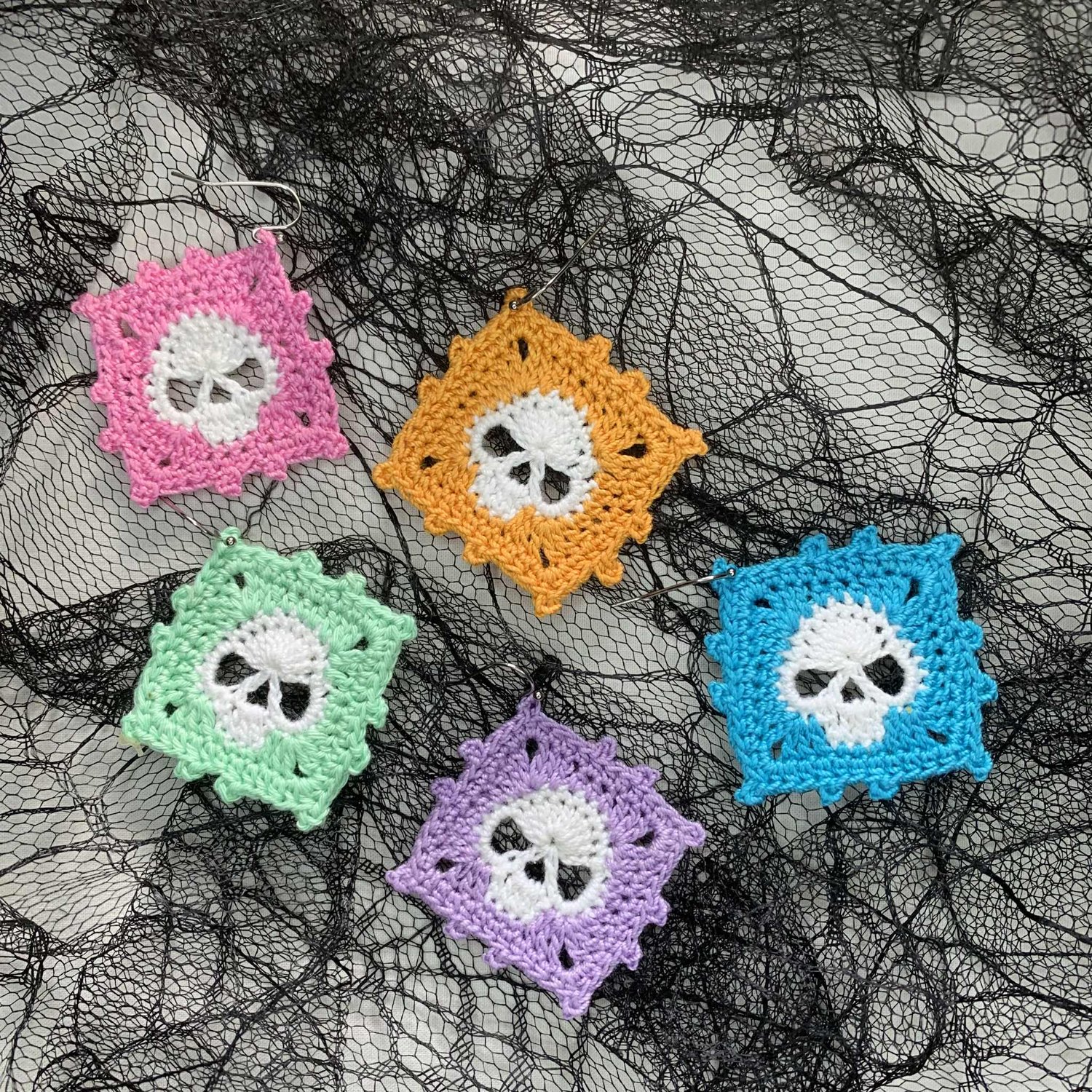 Skull granny square earrings