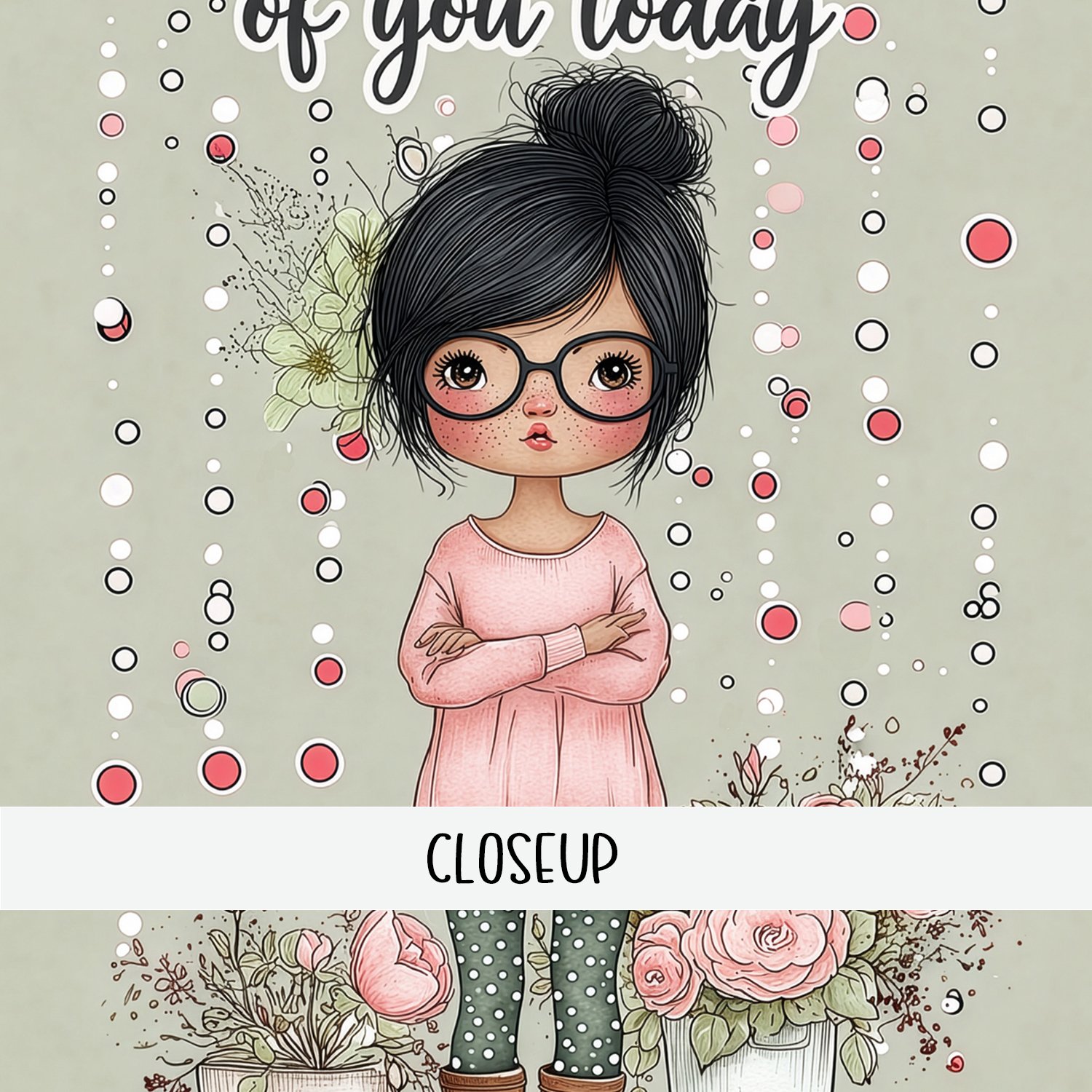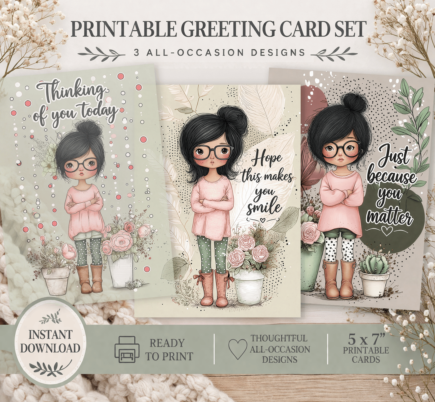 Thinking of You Just Because Printable Greeting Card Set Cute Girl All Occasion Cards