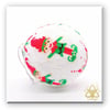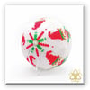 Becoming very popular lately are these 3-D peyote stitch balls, which come in all sizes and designs. One of a series of balls designed to match the Christmas Bells.