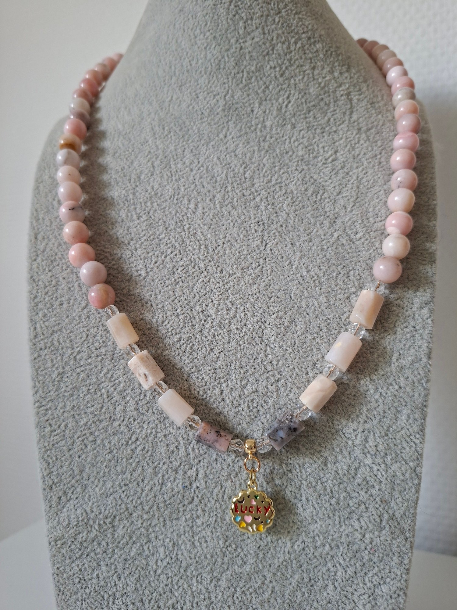 • Collier en perles naturelles d’opale rose – boules 8 mm et perles tubes