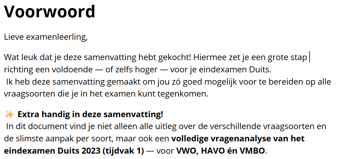 - Leerlingen die hun examen Duits (VWO/HAVO/VMBO) willen halen met minder stress en meer vertrouwen
