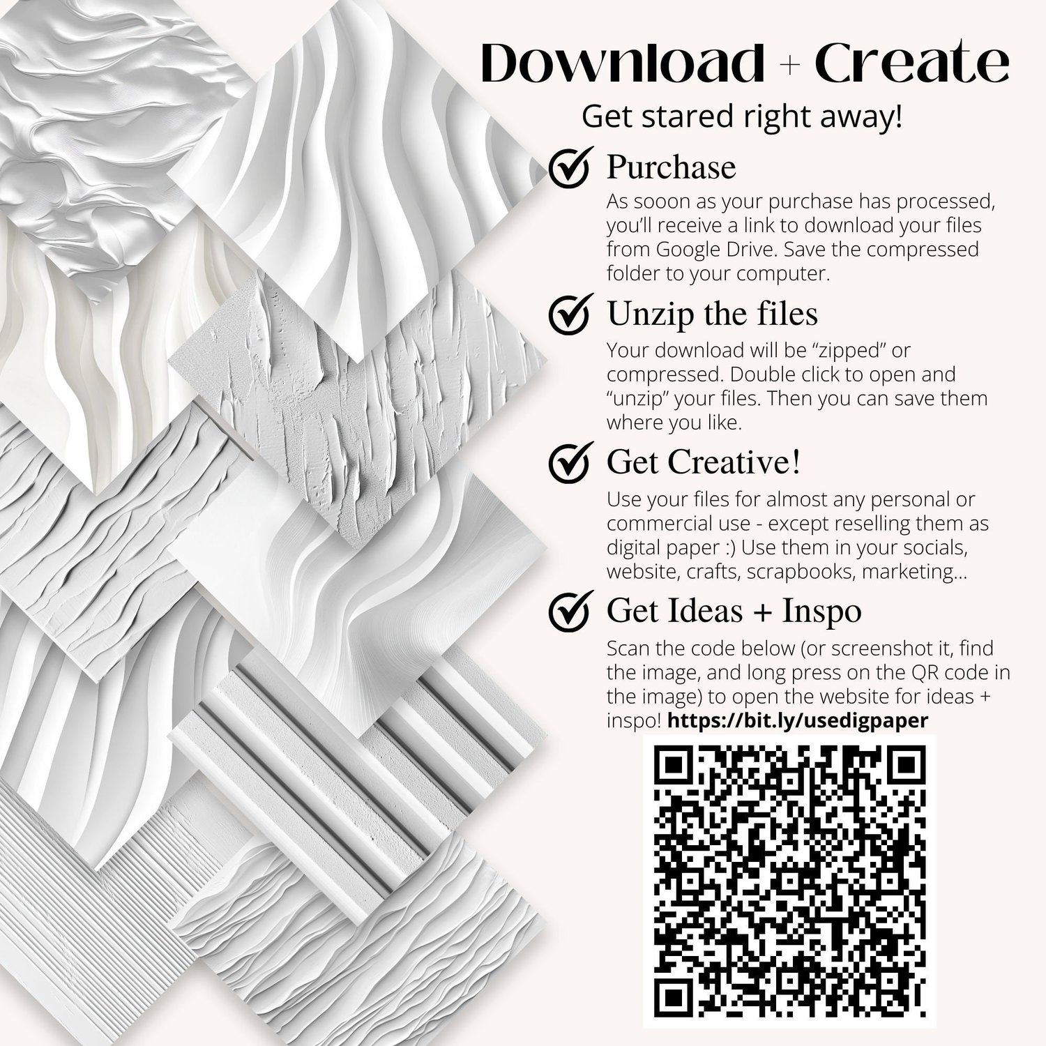 Featuring subtle, elegant white gradients and textured designs, these papers are perfect for businesses, creators, and small brands looking to create professional visuals for marketing, product photography, and social media content. Whether you need a clean, sophisticated photo backdrop or want to enhance your branding materials, this set of 33 high-resolution JPGs will add depth and polish to your projects.