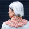 Asti is a generously sized, asymmetrical cowl worked flat on the bias and finished with a small seam at the back of the neck.