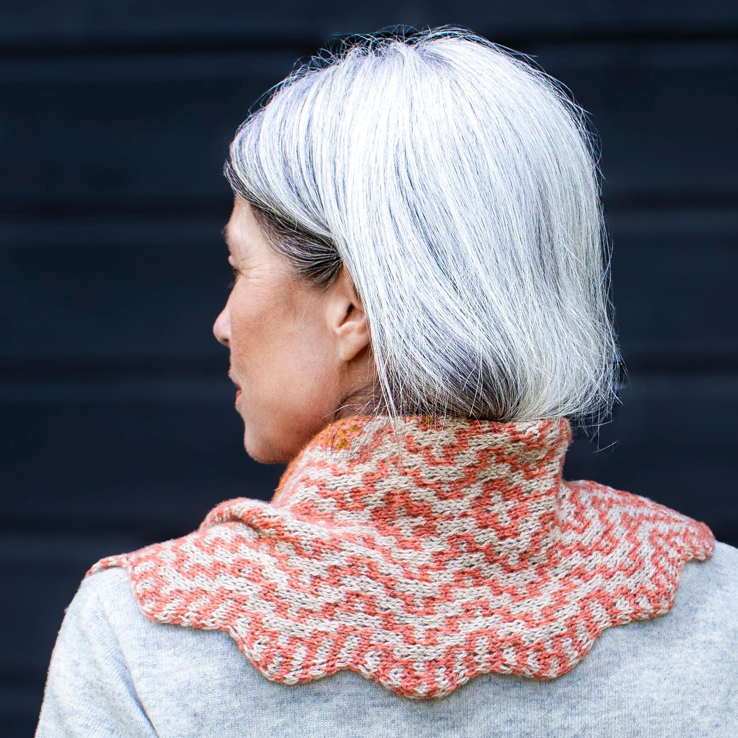 Asti is a playful bandana-style cowl that brings warmth and color to your everyday wardrobe. Worked in fingering weight yarn, it features mosaic knitting with a twist - an easy, approachable technique I call Intarsia Light. The result is a striking accessory that feels both modern and timeless. With endless color possibilities, Asti invites you to create a piece that reflects your own style and pairs beautifully with any outfit.