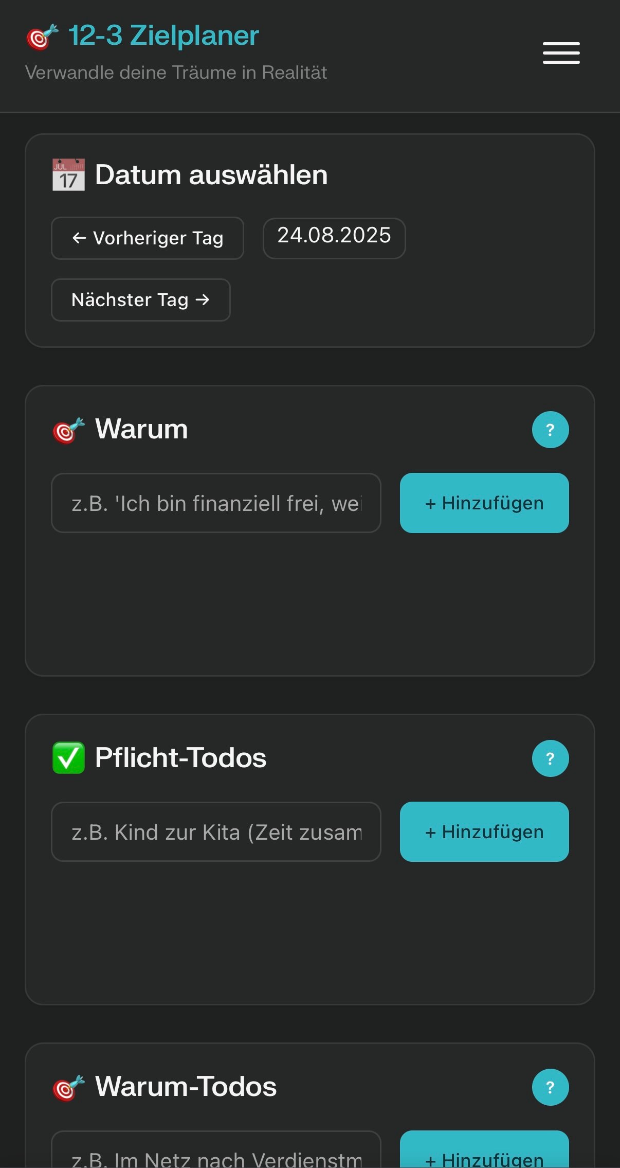 12-3 Planner (Das Tool für Erfolg) – jetzt auch als Web‑App fürs Handy