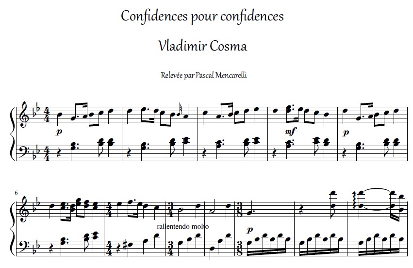 Vladimir Cosma - Confidences pour confidences - Partition Piano