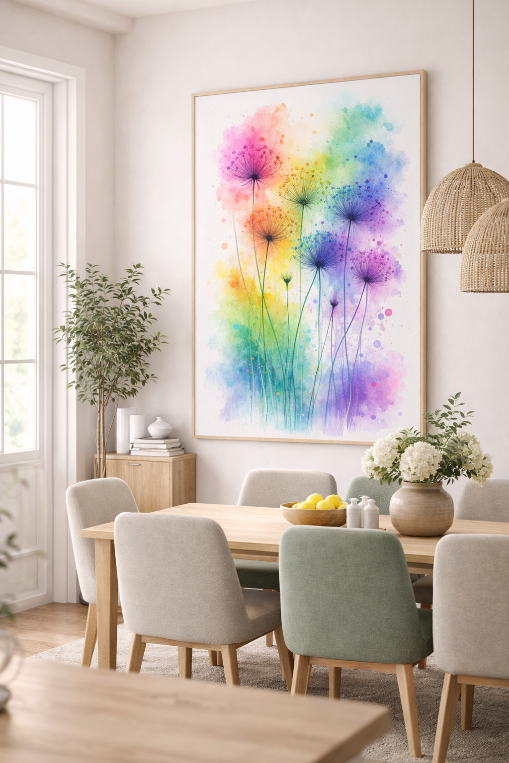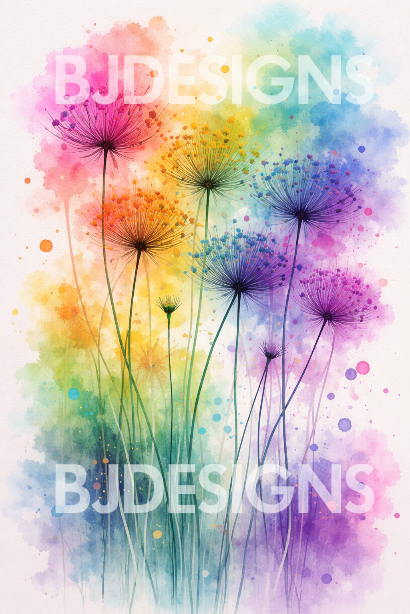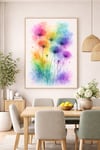 Bring colour, calm, and creativity into your space with this Rainbow Watercolour Flowers Wall Art. This vibrant botanical artwork features delicate, airy florals painted in a soft yet expressive watercolour style, blending rainbow hues that instantly uplift any room.