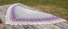 When gauge is met, 420yds/113g of fingering weight will net a shawl that has a wingspan of 44”/112cm and measures 19”/48cm down the back. 840yds/226g of fingering weight will net a shawl that has a wingspan of 62”/157.5cm and measures 27”/68.5cm down the back. Size can be customized by working extra/fewer repeats.Skills required