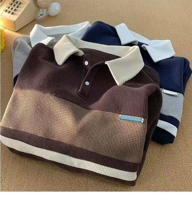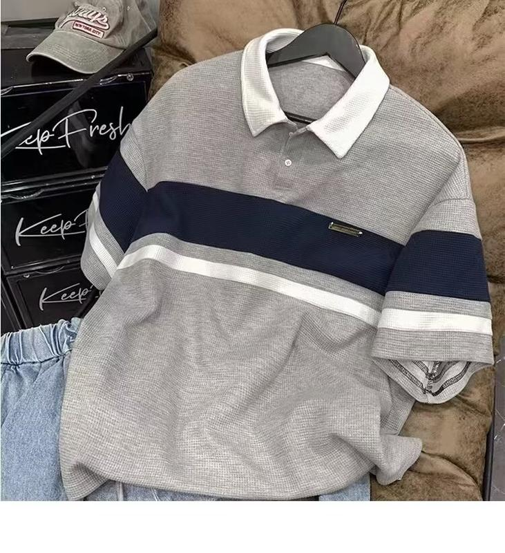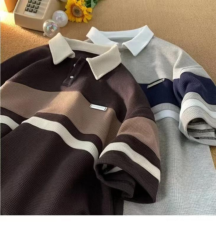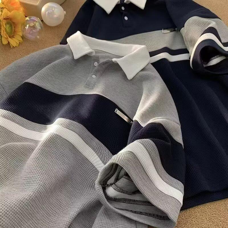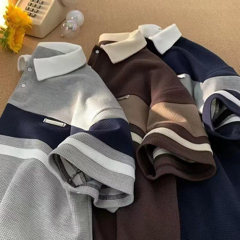 Matching Plaid Polo Shirt Knitted Men Summer Trend Roll Collar Shirt Loose Fit Casual Short Sleeve T-Shirt Suitable for Couples Top