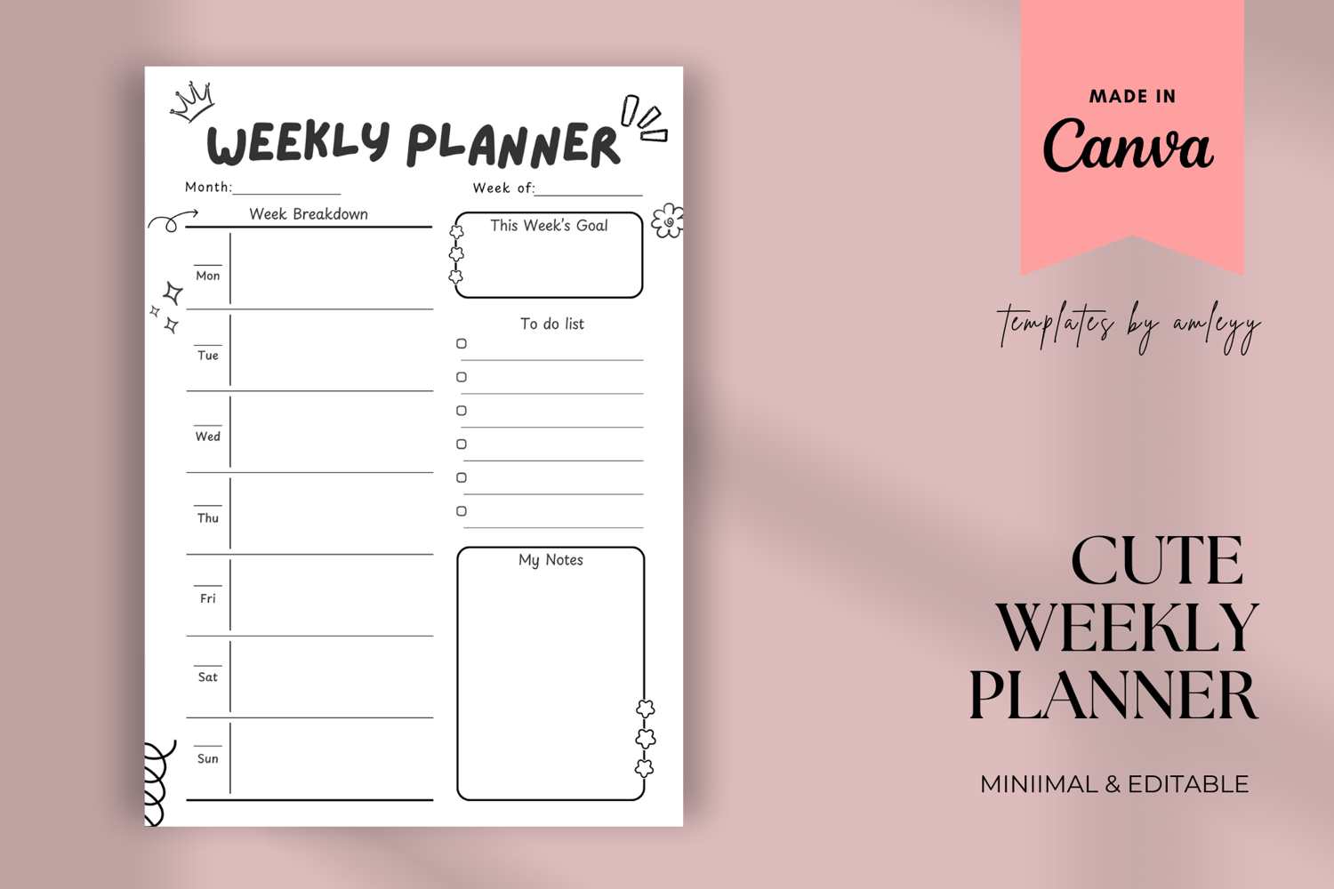 Cute Weekly Planner | Canva Editable Template | Printable Weekly Organizer PDF