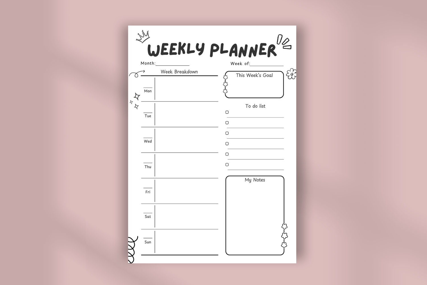 - Printable planner pages