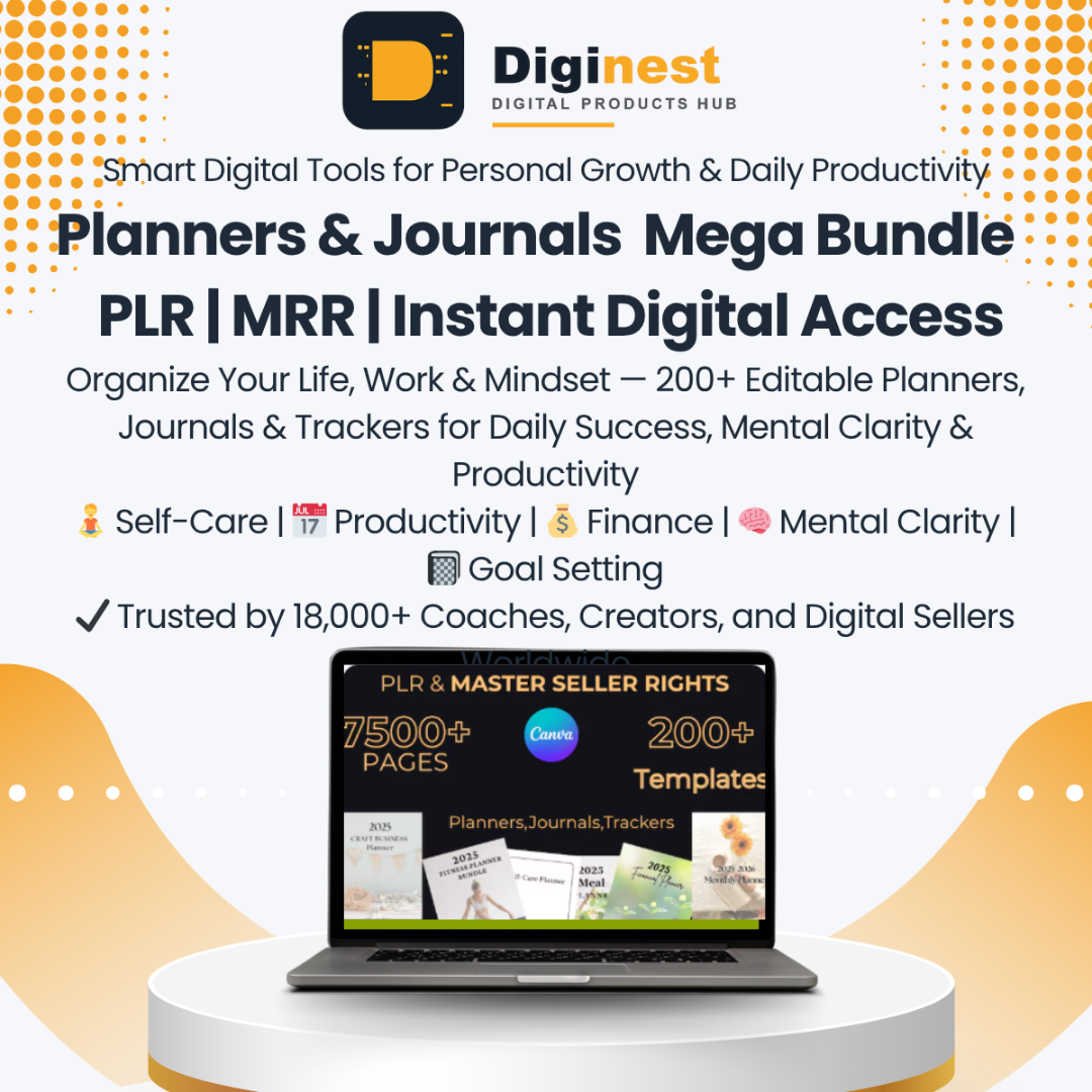 Digital Planners & Journals Mega Bundle β 200+ Editable Templates (GoodNotes + Canva + PLR)
