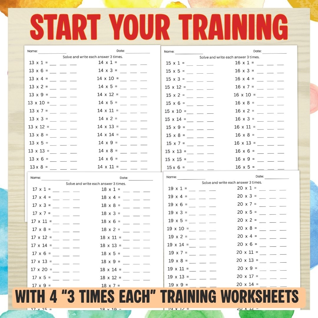 Help students strengthen and retain multiplication tables 13–20 with structured, high-repetition practice.