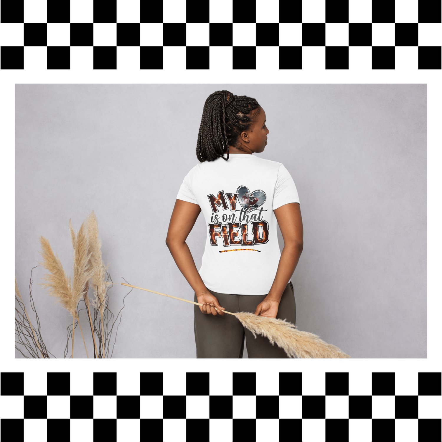 Editable ‘My Mom on the Field’ drag-and-drop graphic design template. Easy to customize with photos and text, perfect for creating sports-themed prints, shirts, or keepsakes.